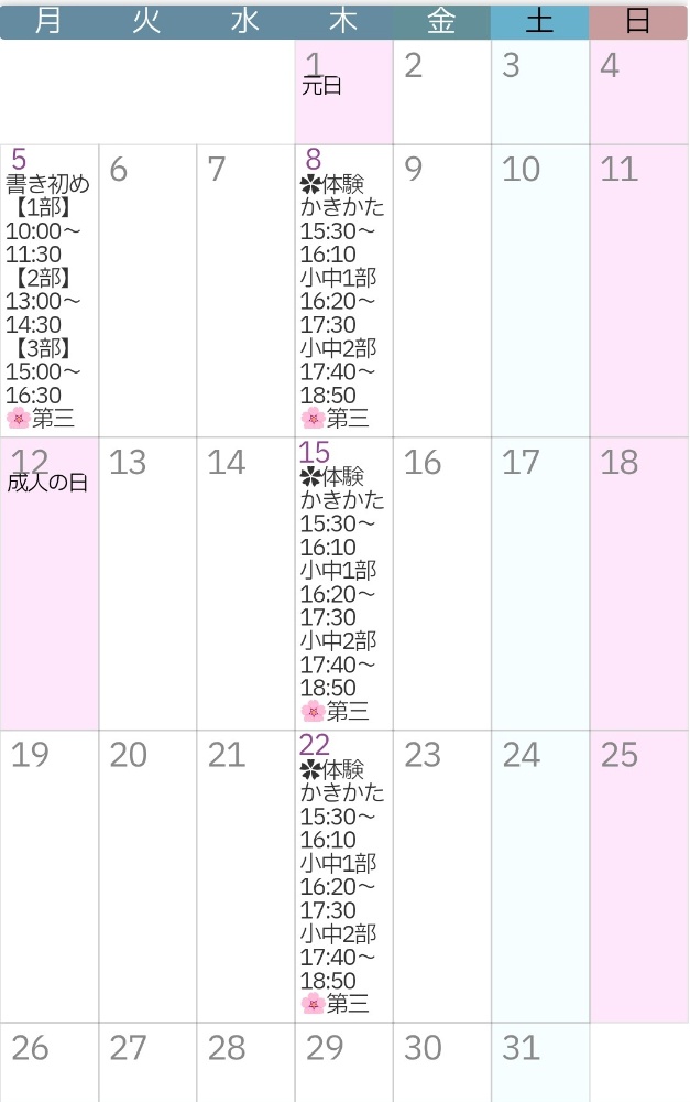 ✿1月より桜の筆書道教室が開講致します✿1月は、書き初め会と体験レッスンになります。